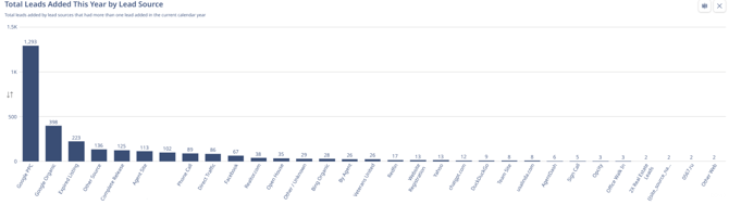 X-Axis (Horizontal): Every specific source that generated at least one lead, sorted from highest performing to lowest performing.
