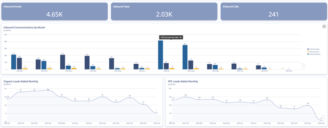 Key Insight: The drop in this example explains why your Inbound Communications (the middle chart) dropped in Q4. You stopped feeding the machine with paid leads, so the inbound responses naturally dried up.